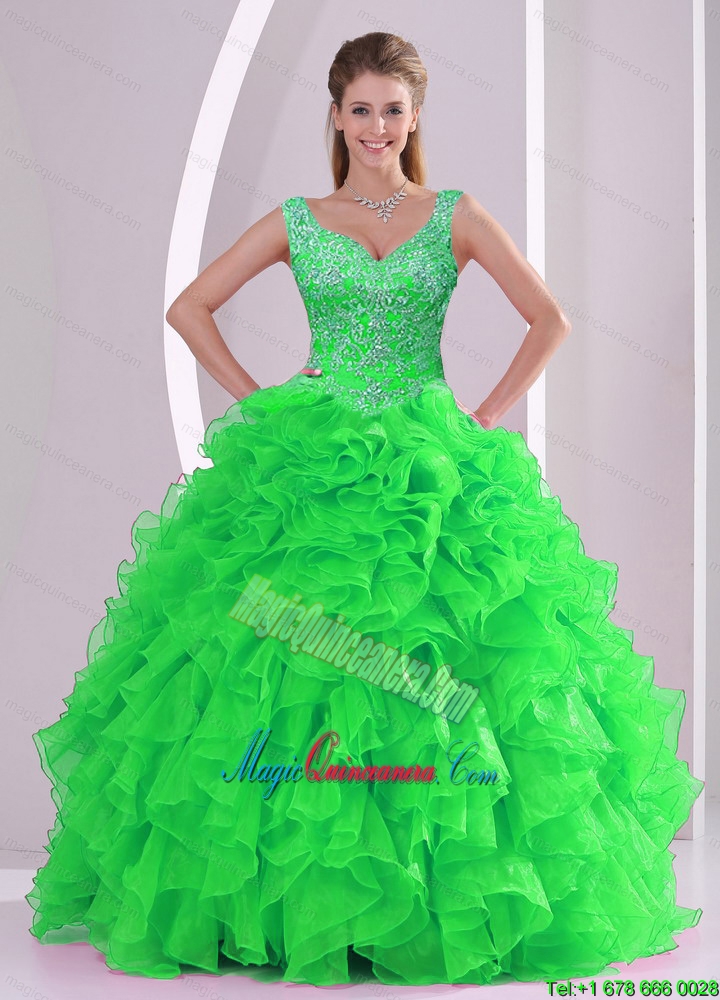 , Wonderful and New style Beading and Ruffles Spring Green Quinceanera Dresses