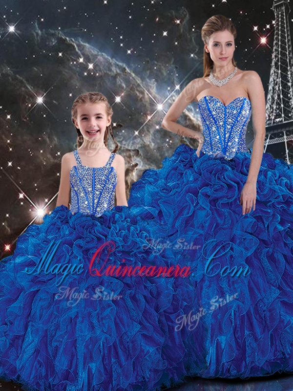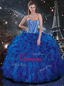 Wonderful Ball Gown Princesita with Quinceanera Dresses with Beading and Ruffles in Blue for Fall