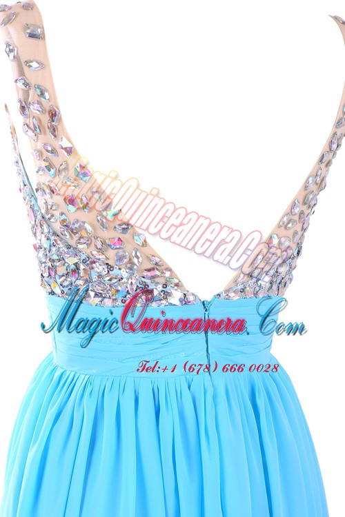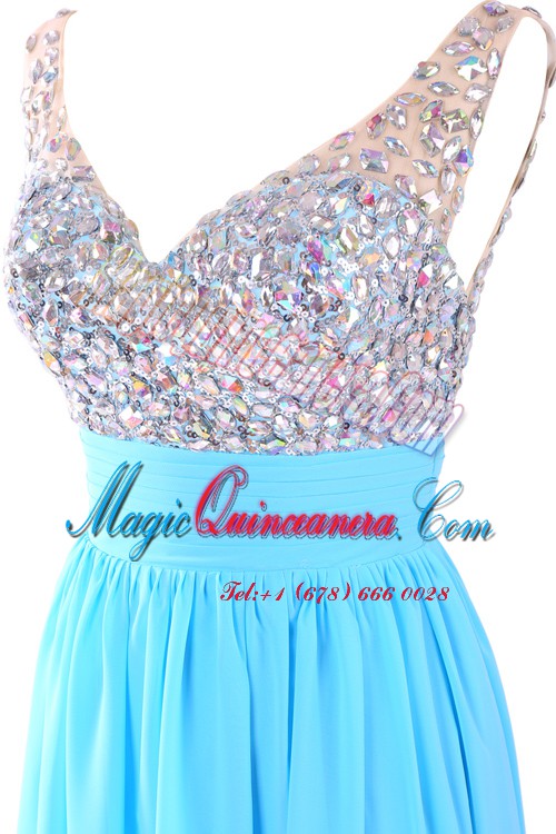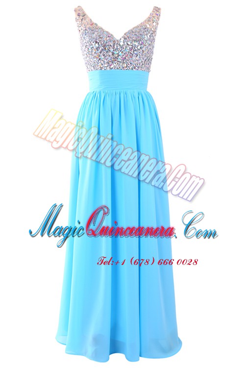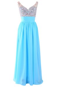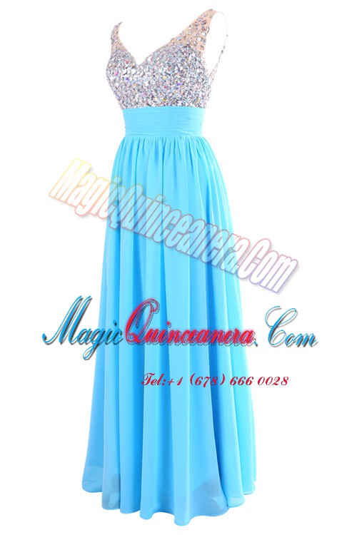 Wonderful Chiffon Sleeveless Floor Length Evening Dress and Beading