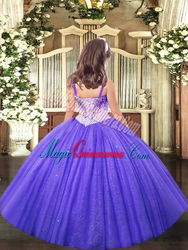 , Wonderful Hot Pink Tulle Lace Up Straps Sleeveless Pageant Gowns For Girls Beading