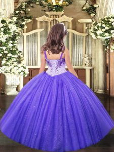 Wonderful Hot Pink Tulle Lace Up Straps Sleeveless Pageant Gowns For Girls Beading