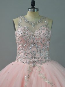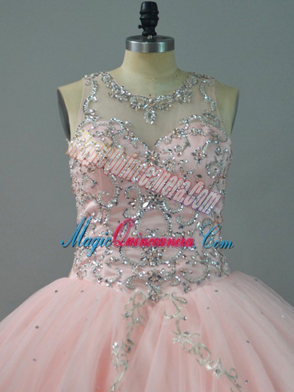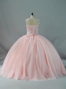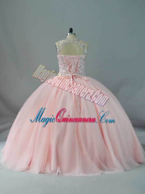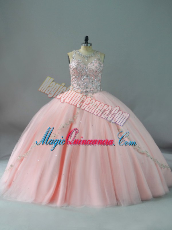 Wonderful Lace Up 15th Birthday Dress Peach for Sweet 16 and Quinceanera with Beading