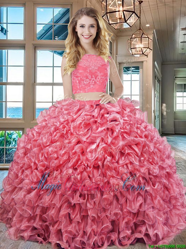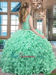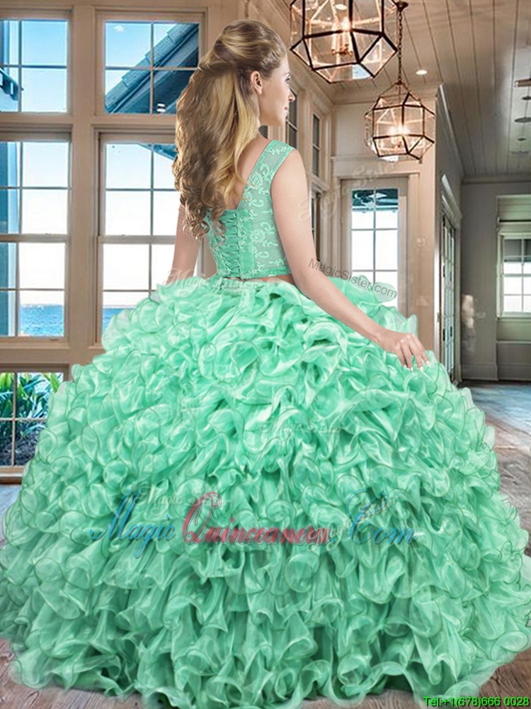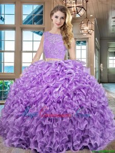 Wonderful Lavender Organza Lace Up Bateau Sleeveless Floor Length 15 Quinceanera Dress Lace and Ruffles