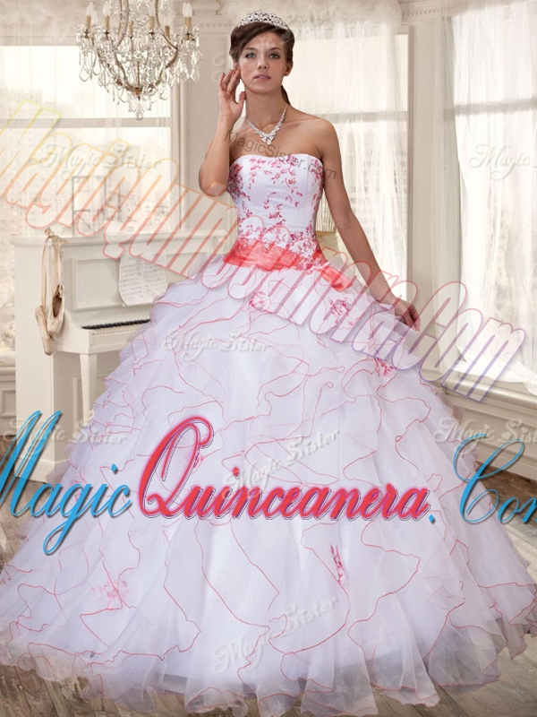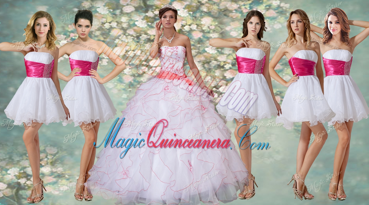 , Wonderful Ruffled and Applique Quinceanera Dress and Short Beaded White Dama Dresses