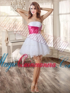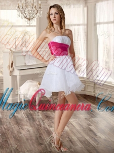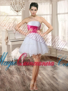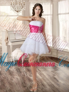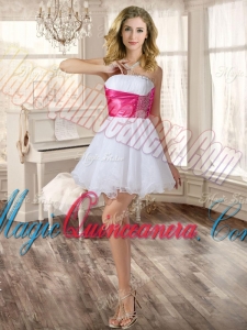 Wonderful Ruffled and Applique Quinceanera Dress and Short Beaded White Dama Dresses
