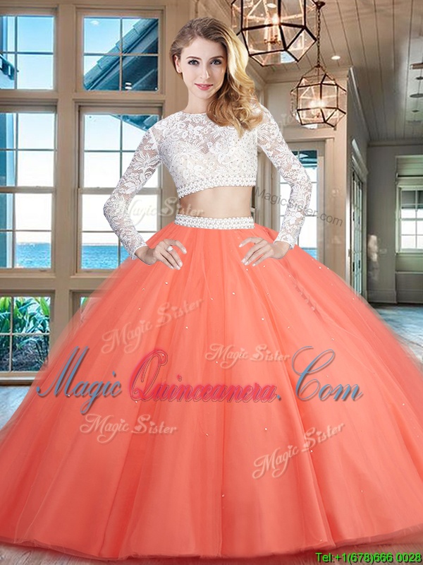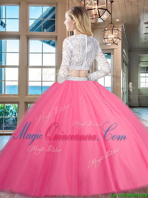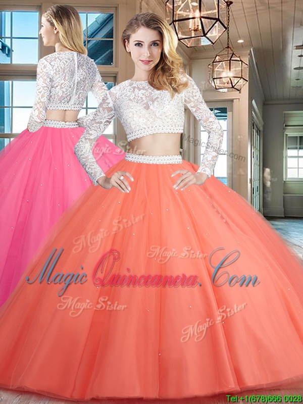 Wonderful Scoop Long Sleeves Beading and Lace Zipper Vestidos de Quinceanera