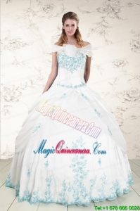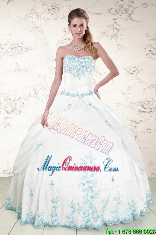 , Wonderful Strapless Appliques 2015 Quinceanera Dresses in White