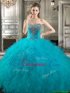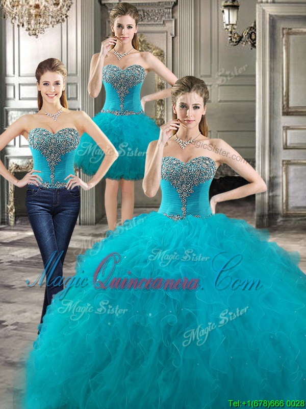 Wonderful Three Piece Sleeveless Lace Up Floor Length Ruffles Sweet 16 Dresses