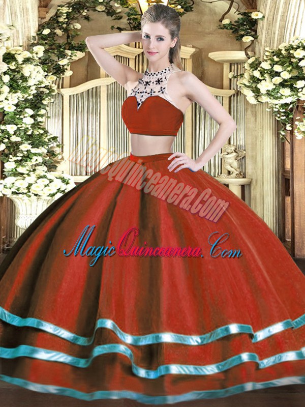 , Wonderful Wine Red Sleeveless Beading Floor Length Quinceanera Gowns