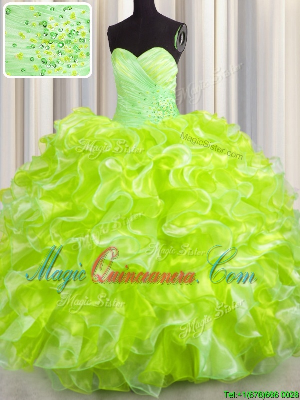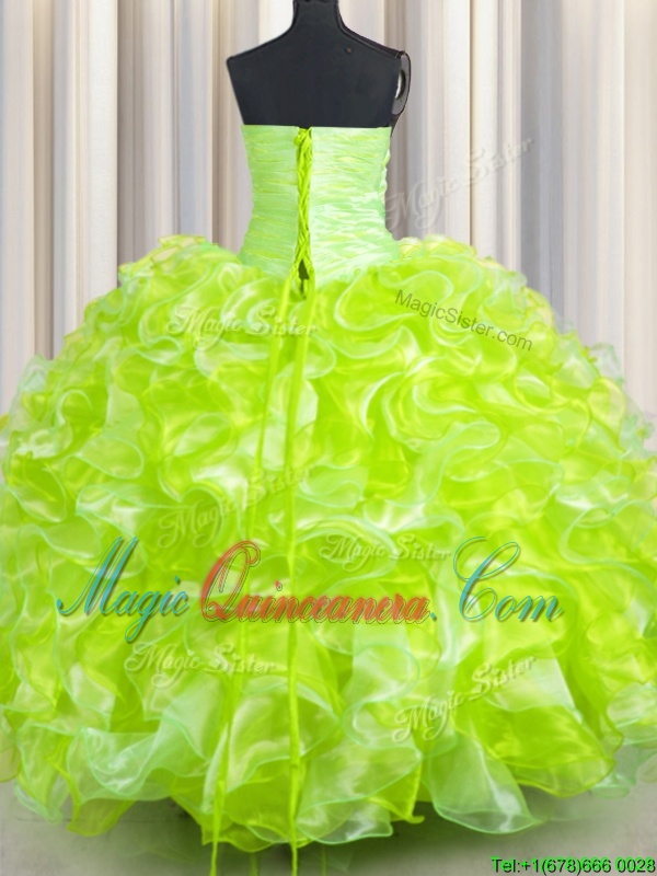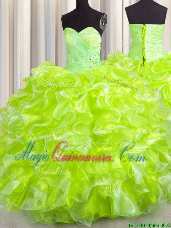 Yellow Green Ball Gowns Beading and Ruffles Ball Gown Prom Dress Lace Up Organza Sleeveless Floor Length