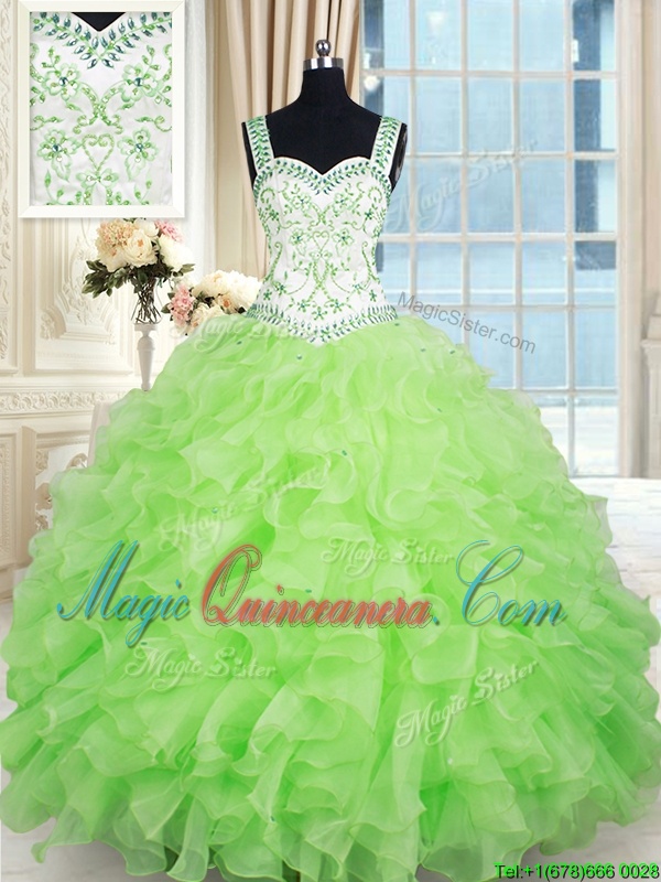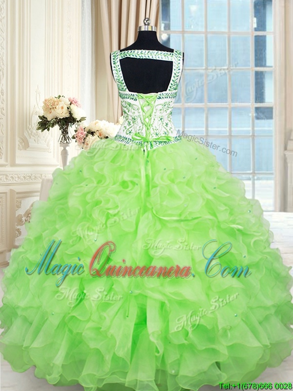 , Yellow Green Ball Gowns Beading and Ruffles Ball Gown Prom Dress Lace Up Organza Sleeveless Floor Length