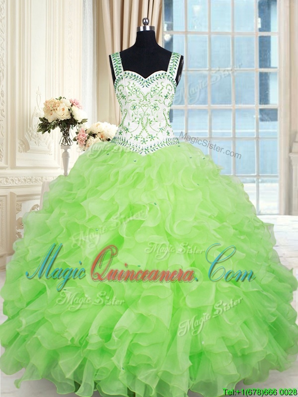 You're reviewing: Yellow Green Ball Gowns Beading and Ruffles Ball Gown Prom Dress Lace Up Organza Sleeveless Floor Length