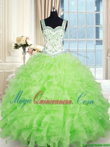 Yellow Green Ball Gowns Beading and Ruffles Ball Gown Prom Dress Lace Up Organza Sleeveless Floor Length