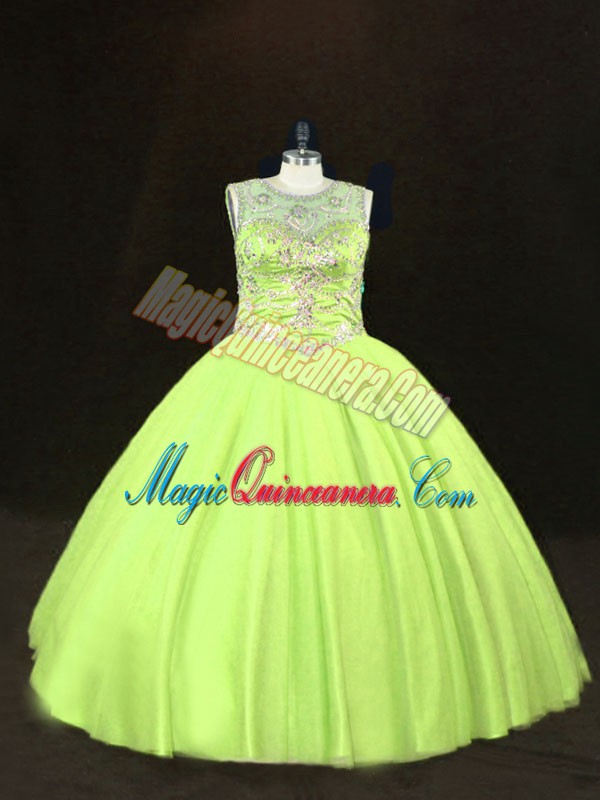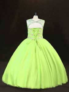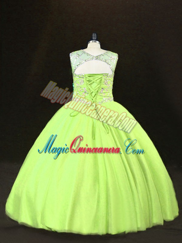 Yellow Green Ball Gowns Beading Quinceanera Dress Lace Up Tulle Sleeveless Floor Length