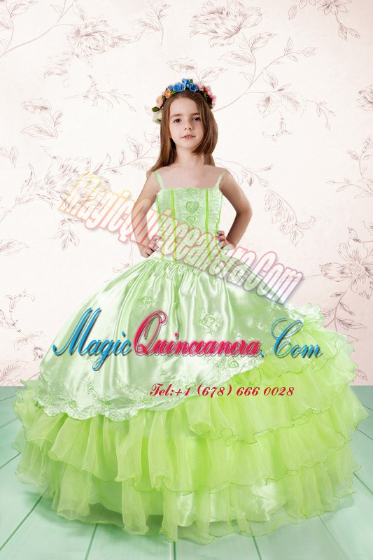 Yellow Green Ball Gowns Embroidery and Ruffled Layers Winning Pageant Gowns Lace Up Organza Sleeveless Floor Length