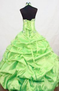 2013 hot lace up beaded girl pageant dresses in madera ca, Yellow Green Beaded Halter Kid Pageant Gowns With Pick-ups