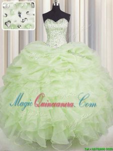 Yellow Green Organza Lace Up Quinceanera Gown Sleeveless Floor Length Beading and Ruffles