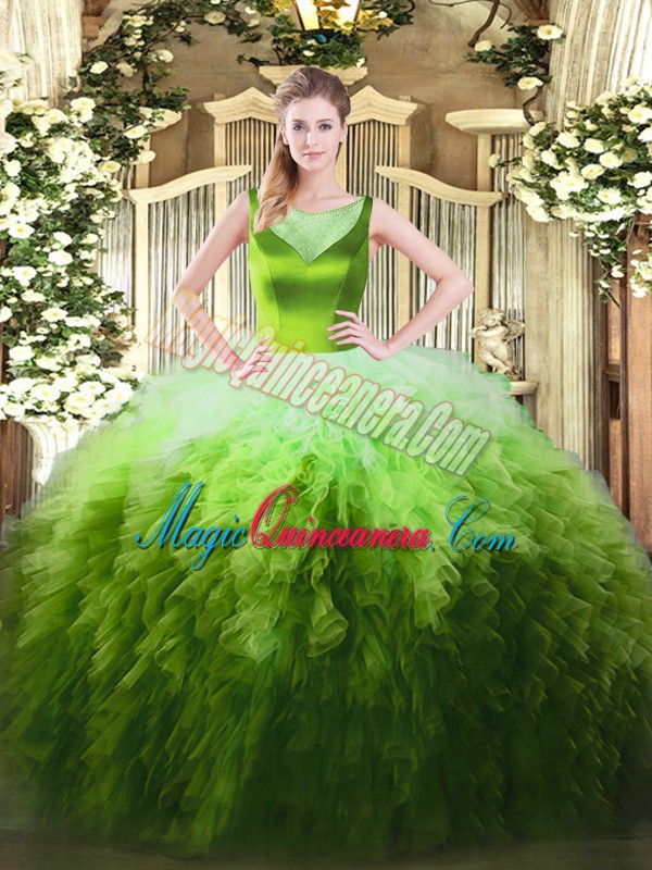 , Yellow Green Sleeveless Beading and Ruffles Floor Length 15 Quinceanera Dress