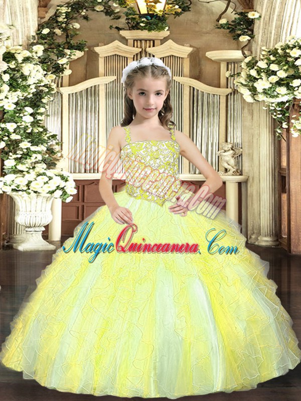 Yellow Green Sleeveless Beading and Ruffles Floor Length Little Girls Pageant Dress Wholesale