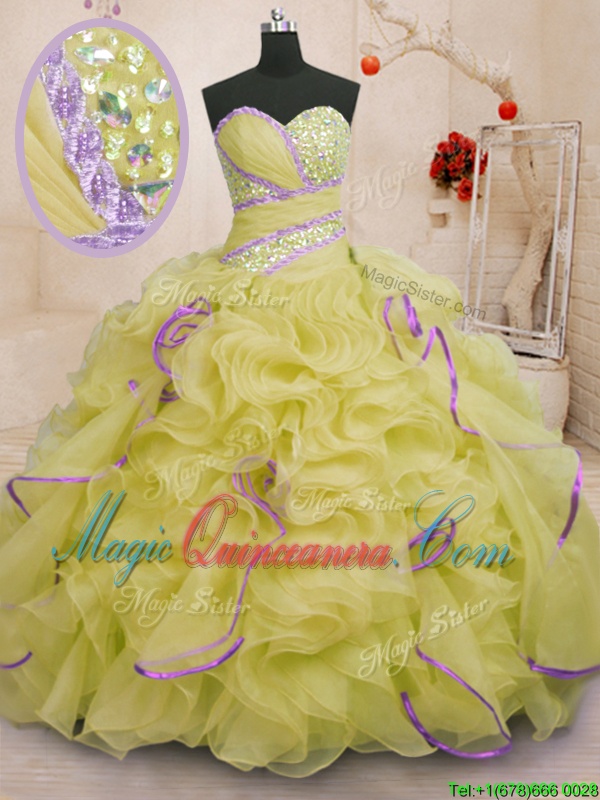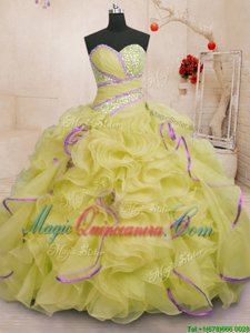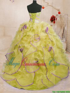 Yellow Green Sweetheart Lace Up Beading and Ruffles Quinceanera Dresses Brush Train Sleeveless