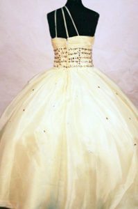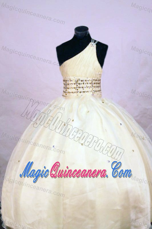 one shoulder white beaded little girls pageant dress ball gown,