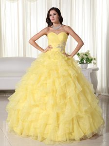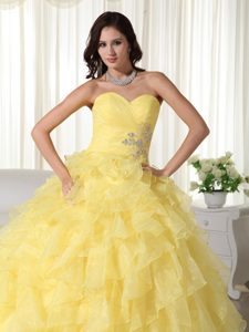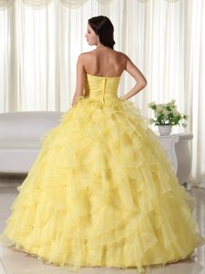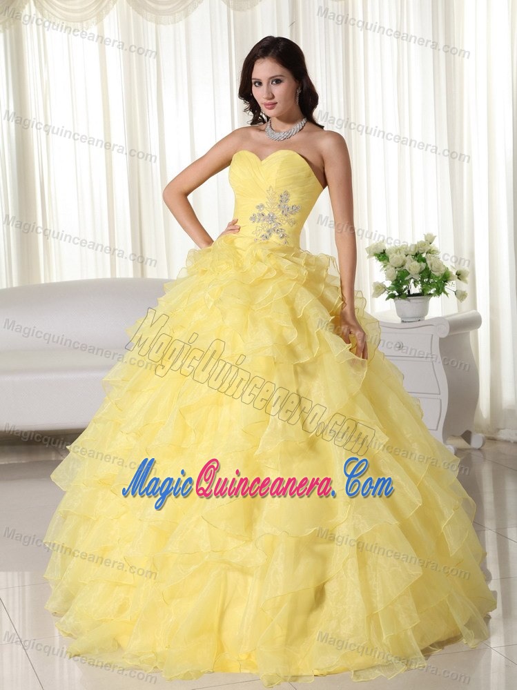Yellow Strapless Ruffled Organza Appliques Quinceanera Dress in paris