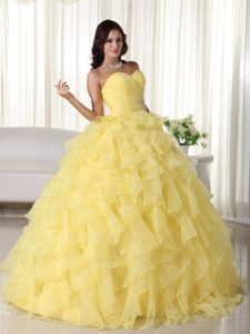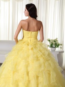latest yellow sleeveless dresses of 15, Yellow Strapless Ruffled Organza Appliques Quinceanera Dress in paris