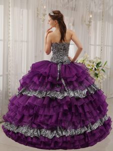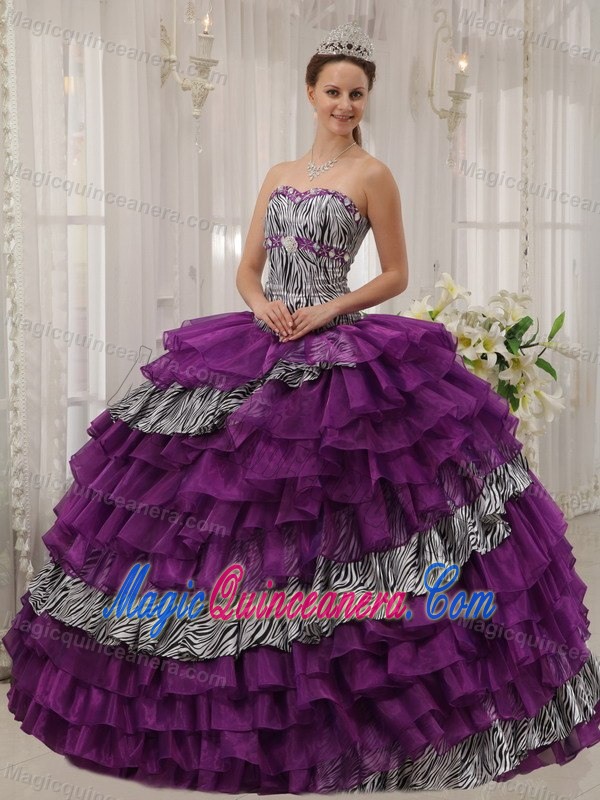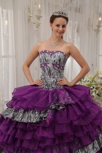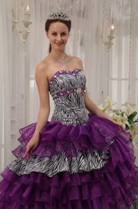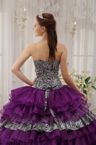 Zebra Print Multi-layer Dress for Quince Beading Organza for Prescott