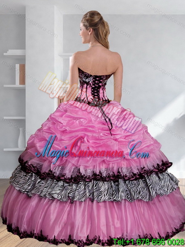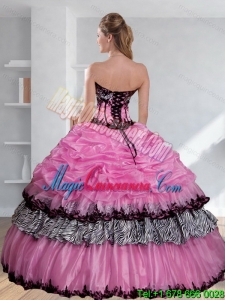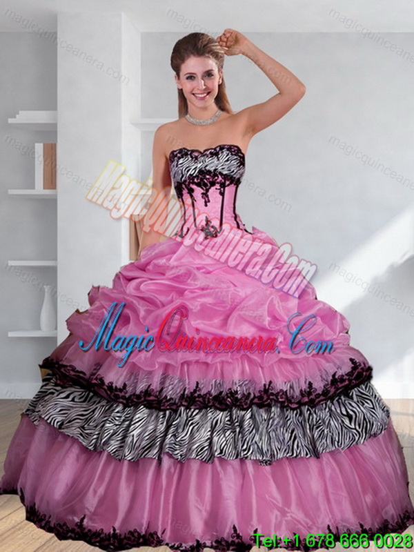 , Zebra Printed Strapless Quinceanera Dress with Pick Ups and Embroidery